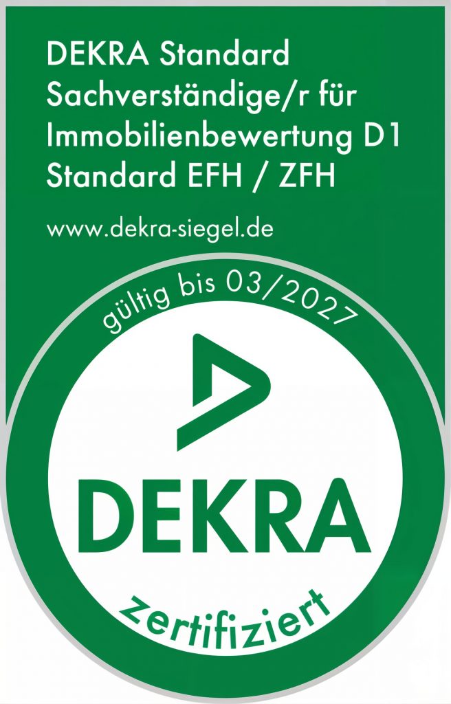 • DEKRA zertifizierter Sachverständiger für Immobilienbewertung D1